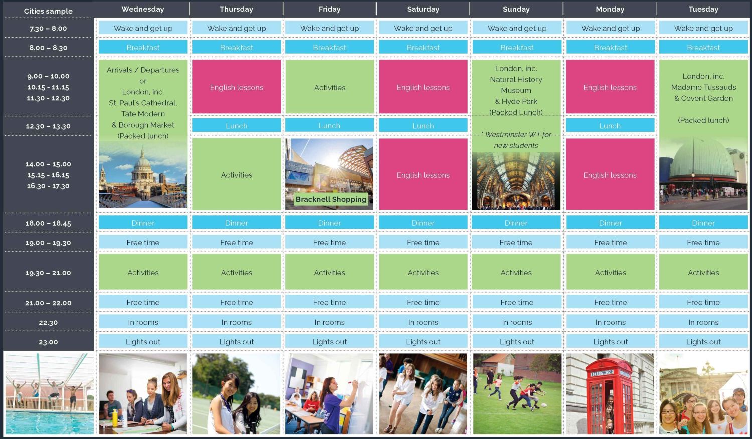 Exemple excursii: St. Paul's Cathedral, Tate Modern, Borough Market, Braknell Shopping, Natural History Museum, Madame Toussauds, Covent Garden etc.