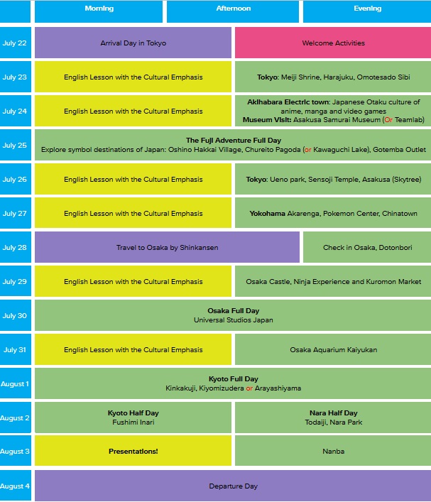 Programul include lectii de limba Engleza si Discover Japan (proiecte si workshopuri despre cultura locala).
